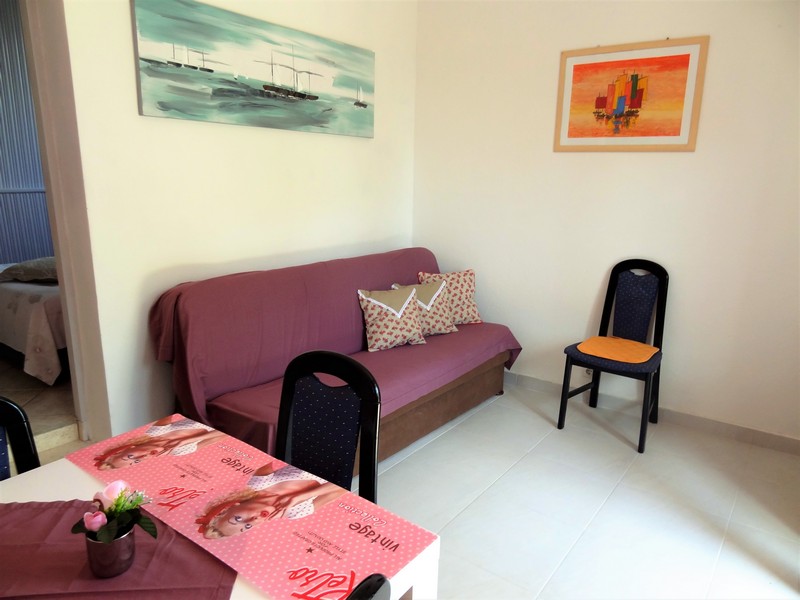 The apartment is located on the ground floor. It has a separate living room and the bedroom, kitchen and toilet with shower and its own terrace overlooking the garden and sea.